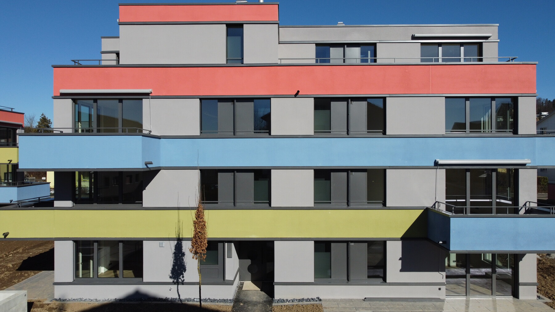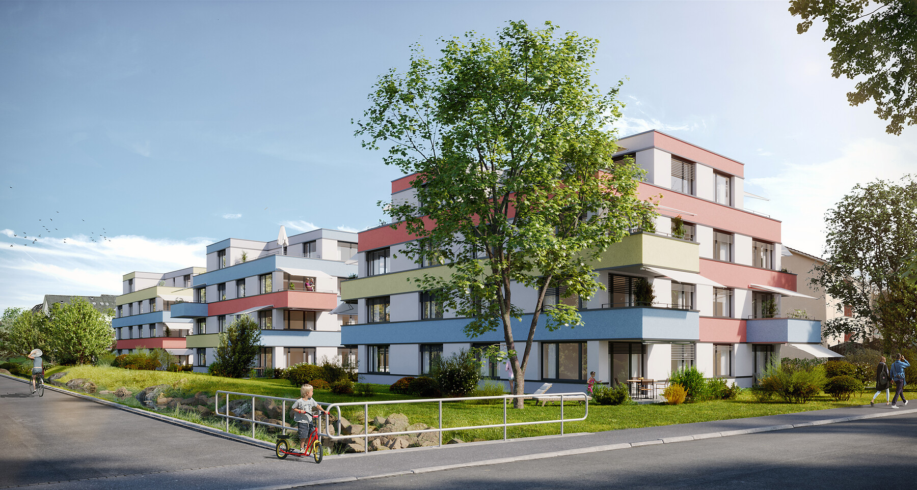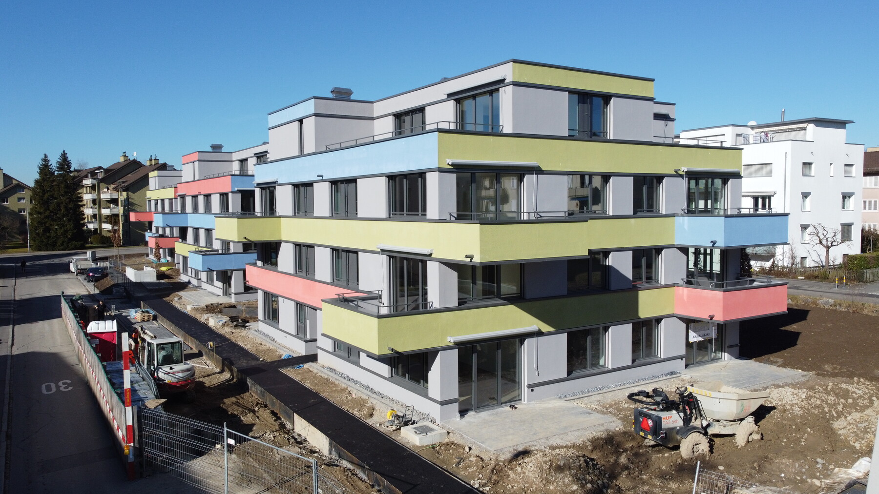 Die Wohnüberbauung befindet sich in einem stark frequentierten Wohngebiet und in unmittelbarer Nachbarschaft zu Wohnhäusern.