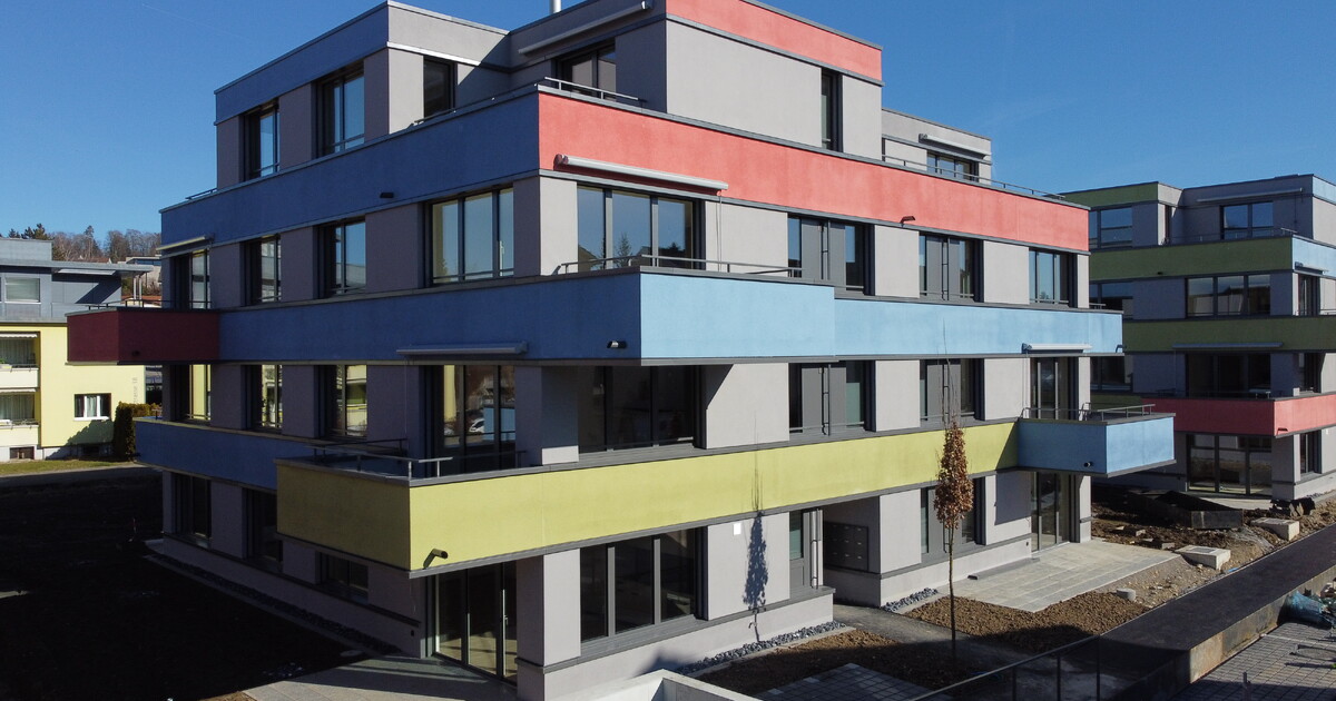 Mit den drei neuen Wohnhäusern konnte die Anzahl Wohnungen optimiert und an den heutigen Bedürfnissen angepasst werden. Die Wohnhäuser mit Balkonen oder Terrassen wurden für 1.5- bis 3.5-Zimmerwohnungen konzipiert. Die Häuser sind mit einer unterirdischen Tiefgarage mit 40 Einstellplätze erschlossen.