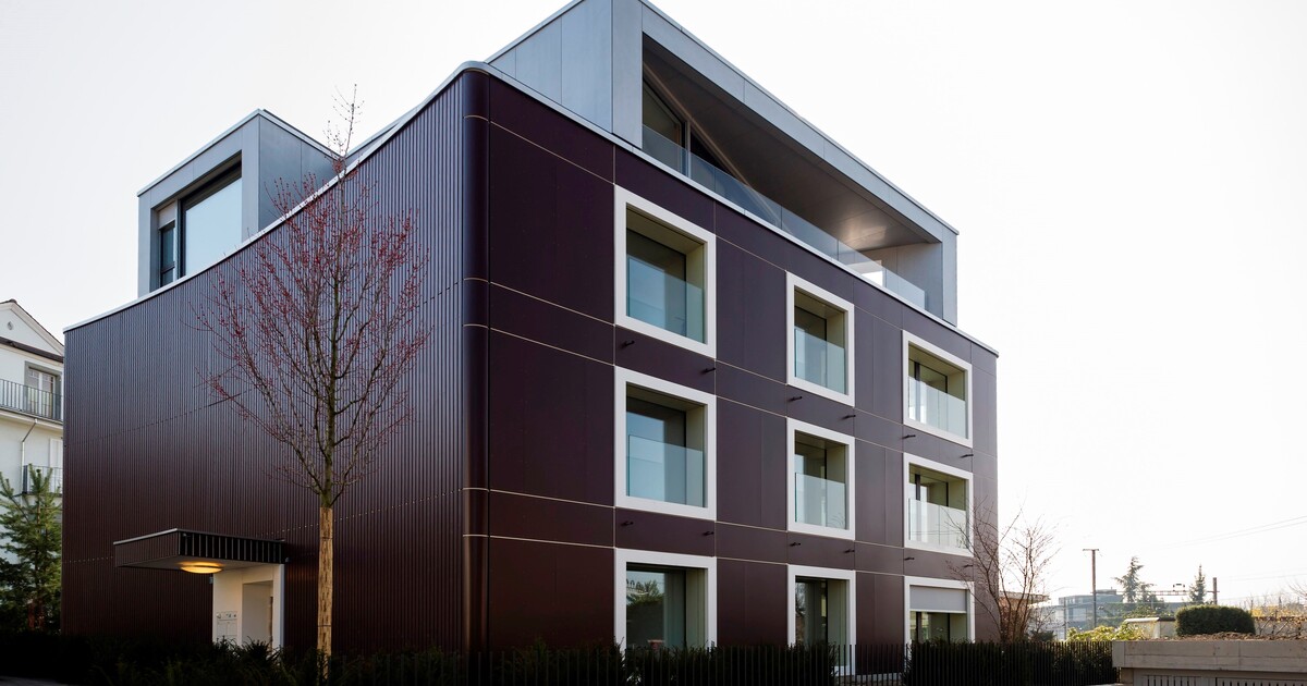 Das Projekt Wiesengrund ist ein schlichter und doch raffinierter, dynamisch und harmonisch in das bestehende Wohnquartier integrierter Neubau. Die vier Wohneinheiten sind um einen zentralen Erschliessungskern (Lift, Treppe, Vertikalleitungen) angeordnet – ein Grundrissprinzip, das durch verschieden ausgerichtete Zonen mit unterschiedlichem Charakter die Nutzungsflexibilität erhöht. Bad und Schlaf- oder Arbeitsräume sind grundsätzlich nach Norden und Osten gerichtet, Wohnraum und Wohnküche öffnen sich nach Westen und Süden.