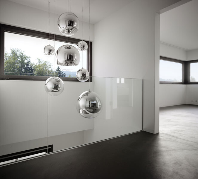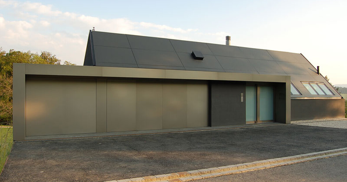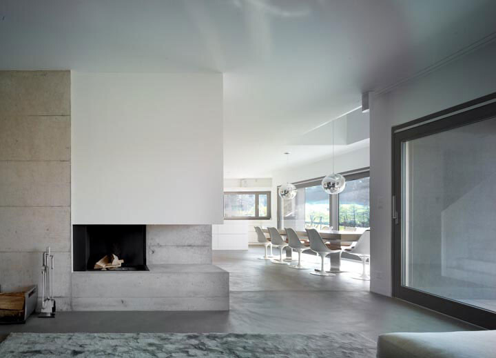 Der Einfamilienhausneubau mit unregelmässigem Satteldach schmiegt sich in den Hang hinein und öffnet sich mit dem Wohngeschoss zum Garten. Die Erschliessung erfolgt von der Rütistrasse her ins Dachgeschoss, wo sich eine Einliegerwohnung befindet. Das Nebengebäude, Garage und Carport, sind ebenfalls auf dem Dachgeschossniveau (= Strassenniveau) angeordnet, wobei ein Teil des Nebengebäudes in das Hauptgebäude integriert wurde. Ein gemeinsames Vordach verbindet den Eingangsbereich des Hauptgebäudes mit der Garagenzufahrt des Nebengebäudes. Das darunter liegende Obergeschoss wird als Schlafgeschoss genutzt. Ein grosses Elternschlafzimmer mit Bad und Ankleide, zwei weitere Zimmer und ein separates Bad befinden sich auf dieser Ebene. Im Erdgeschoss bilden der Wohnraum, der Essbereich und die Küche einen grossen, nach Süden durch grosse Fensterflächen geöffneten Raum. Das Gebäude ist fast voll unterkellert. Die Gebäudehülle besteht aus einem ausgedämmten Zweischalenmauerwerk, wobei die äussere Schale, wie auch das Dach, in Sichtbeton ausgeführt werden sollen. Die innere Schale besteht aus Backsteinmauerwerk. Diese übernimmt die statische Funktion und trägt die darauf gelagerten Geschossdecken. Der Neubau soll nach Minergie –Standard erstellt werden.
