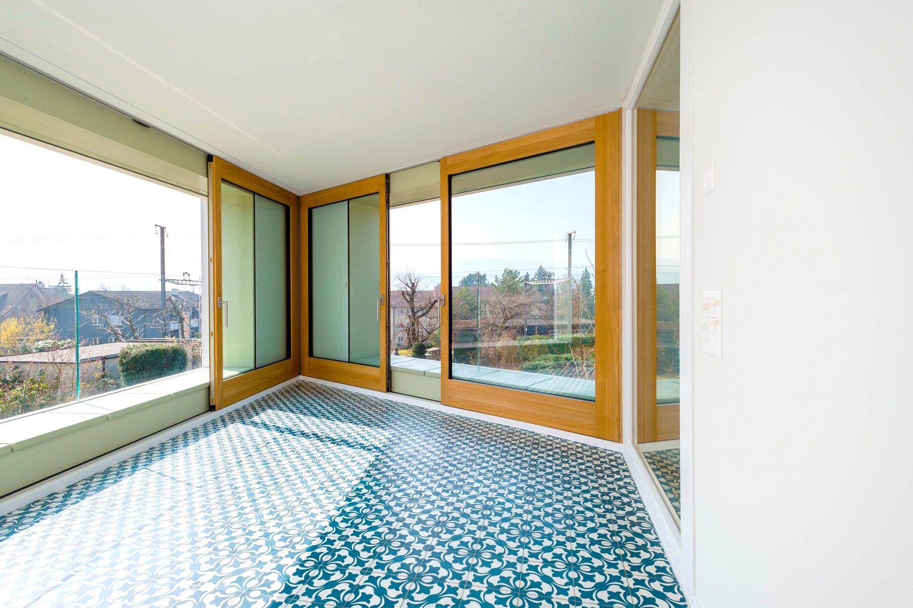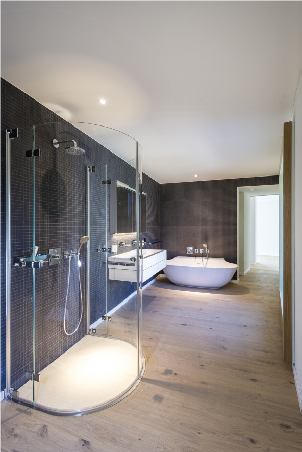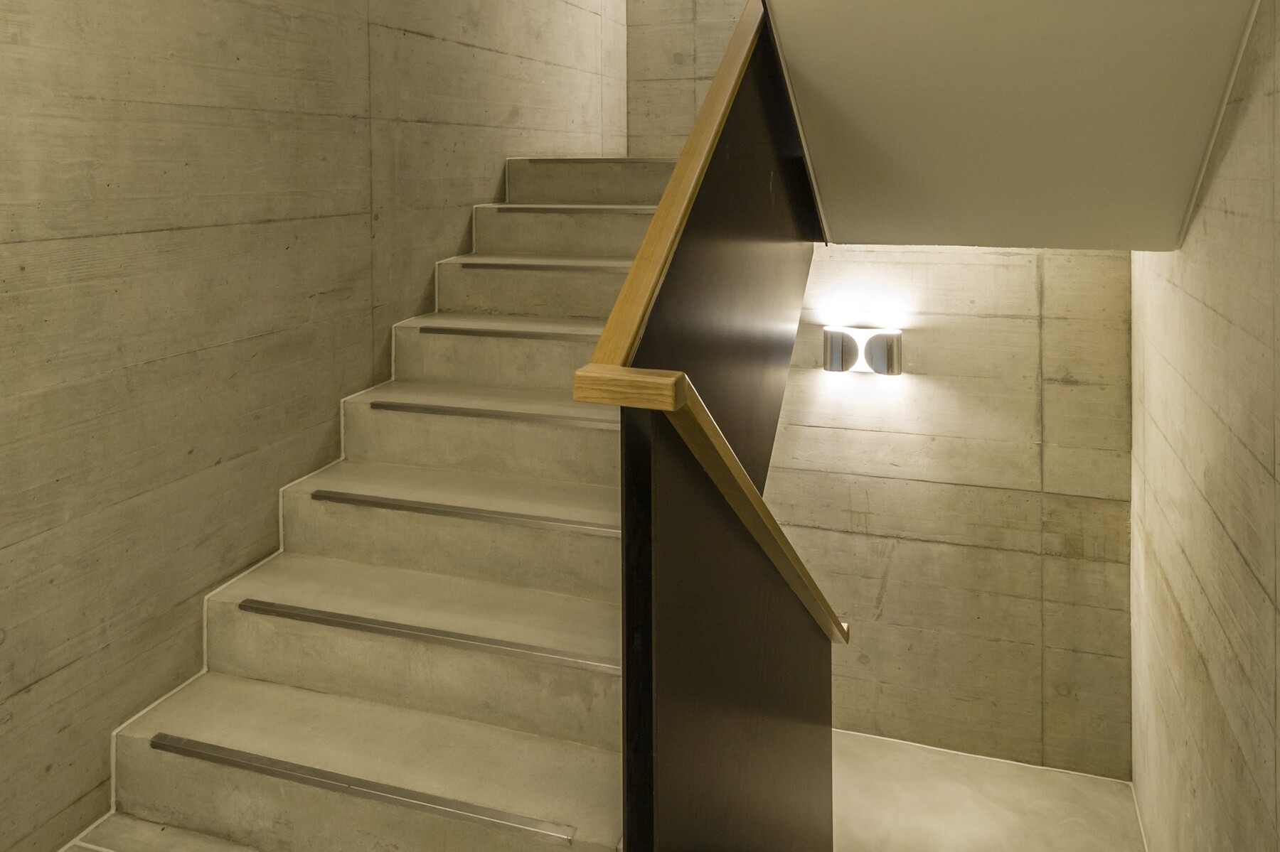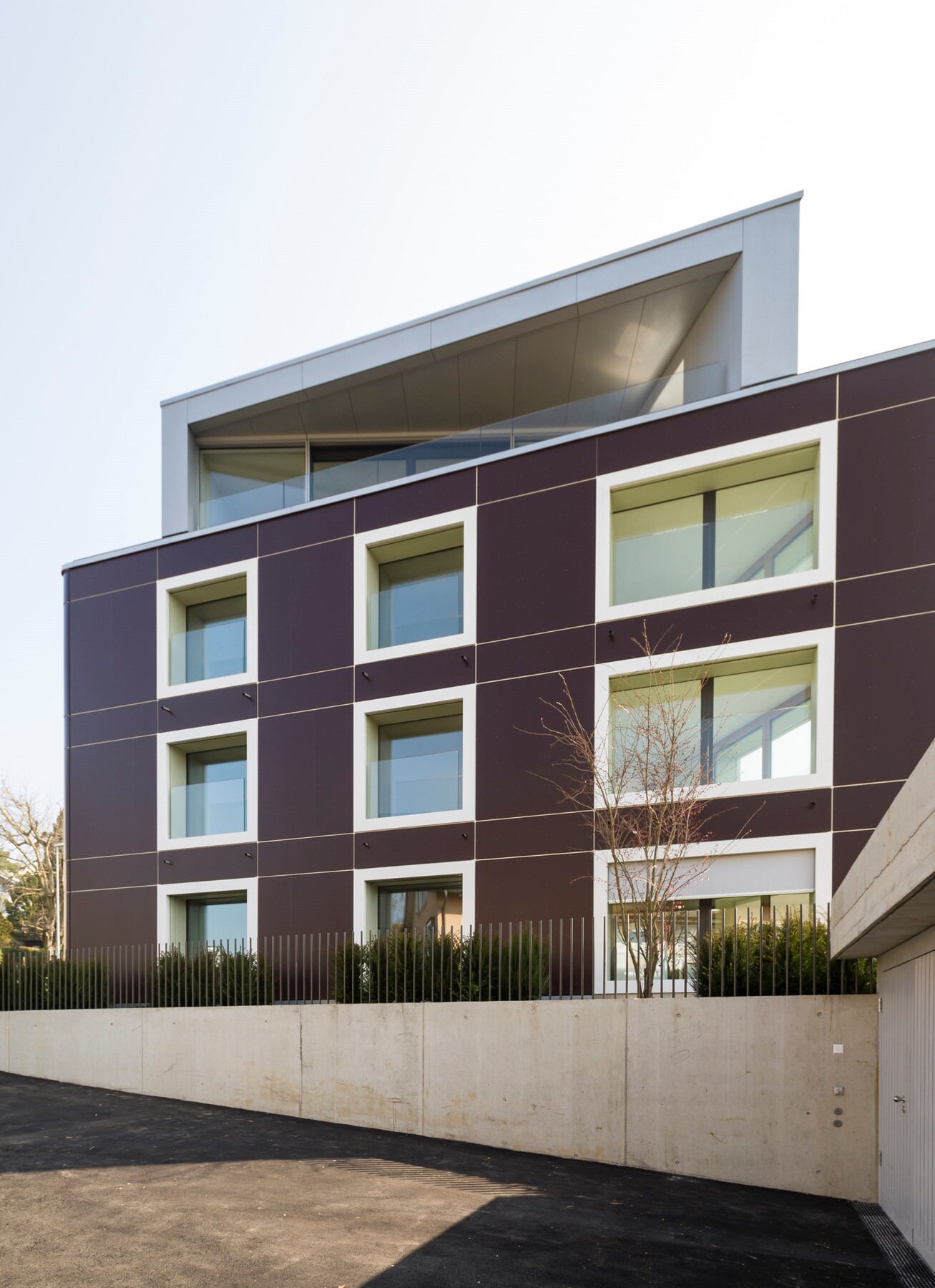Das Projekt Wiesengrund ist ein schlichter und doch raffinierter, dynamisch und harmonisch in das bestehende Wohnquartier integrierter Neubau. Die vier Wohneinheiten sind um einen zentralen Erschliessungskern (Lift, Treppe, Vertikalleitungen) angeordnet – ein Grundrissprinzip, das durch verschieden ausgerichtete Zonen mit unterschiedlichem Charakter die Nutzungsflexibilität erhöht. Bad und Schlaf- oder Arbeitsräume sind grundsätzlich nach Norden und Osten gerichtet, Wohnraum und Wohnküche öffnen sich nach Westen und Süden.