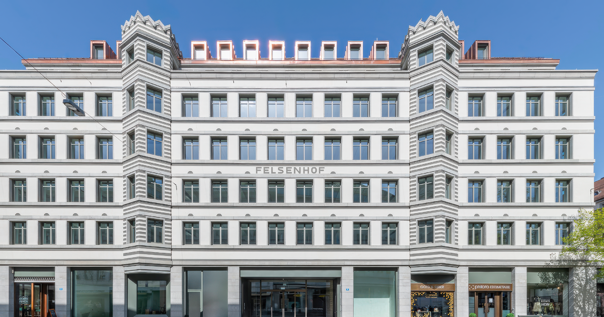 Bereits frühere Eingriffe – wie der Umbau in den 1970er-Jahren mit Aufstockung, Fassadenverlängerung und der markanten Beton-Wendeltreppe anstelle des ursprünglichen Lichthofs – sind heute Teil dieser gewachsenen Geschichte. Die jüngste Sanierung knüpft daran an, klärt die historische Fassadenstruktur durch eine neugestaltete Zugangssituation und schafft eine repräsentative Adresse im Zentrum der Stadt. Die nachhaltige Transformation wurde mit der Platin-Zertifizierung nach SNBS-Hochbau ausgezeichnet.