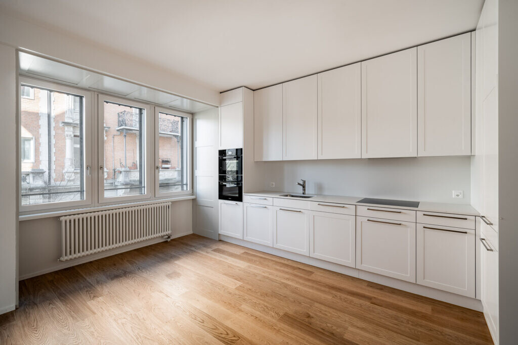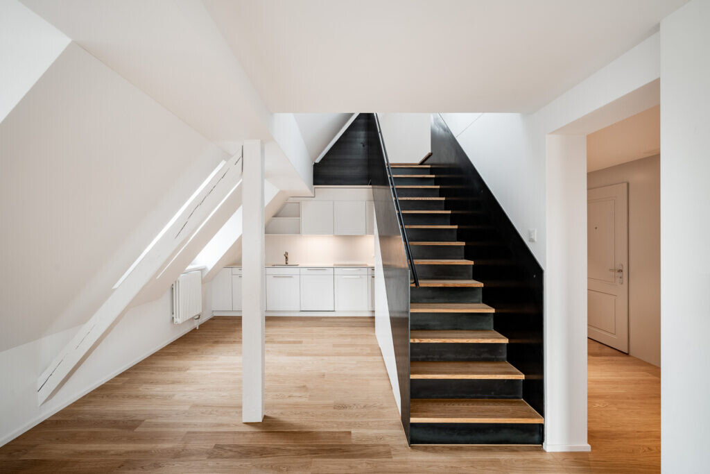 Komplette Sanierung der unbewohnten Liegenschaft in Zürich mit 12 Wohneinheiten. Komplette Entkernung und Aufwertung der gesamten Liegenschaft mit modernen Grundrissen. Einbau einer Aufzugsanlage in den Bestand sowie einer Gesamterneuerung der haustechnischen Anlagen und Steigzonen. Ertüchtigung sämtlicher Blindböden durch neuen Bodenaufbau mit hoher Schalldämmung. Erneuerung von Fenstern, Zugängen, Dachaufbau mit verbessertem Sommer– und winterlichem Wärmeschutz. Hochwertiger Materialisierung in Berücksichtigung der Geschichte des Gebäudes.