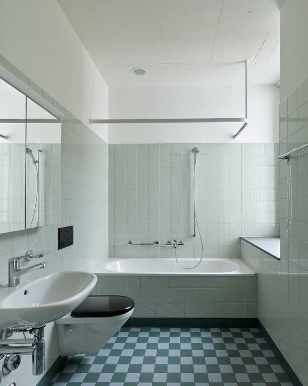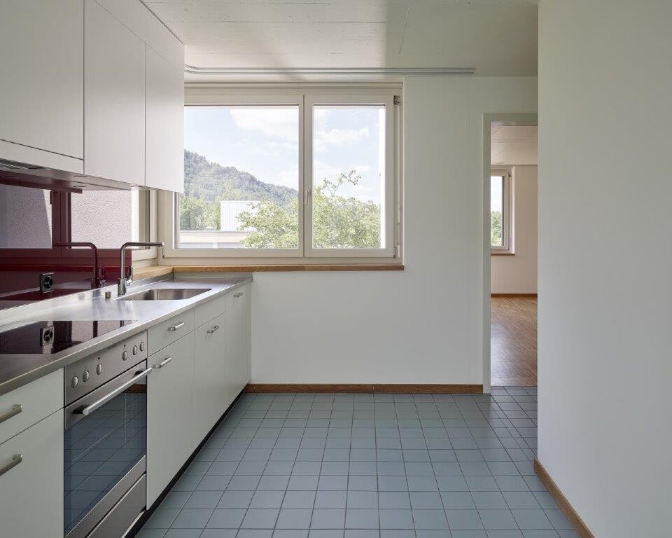 Im 7-geschossigen Ergänzungsbau werden sechs 4.5 und acht 3.5 - Zimmerwohnungen angeboten. Das Layout der beiden Grundrisstypen wird über eine grosszügige Entréehalle geordnet. Von diesem Dreh- und Angelpunkt aus sind sämtliche Räume und auch die Nasszellen erschlossen. Es gibt eine klare Gliederung in Tag- und Nachtbereich, was einer flexiblen Vermietbarkeit zugutekommt. Familien, WG’s, Mehrgenerationenhaushalte etc. sind vorstellbar. In den 3.5 - Zimmerwohnungen besteht die Möglichkeit, das Wohnzimmer auch als Schlafzimmer zu nutzen. Bei den 4.5 - Zimmerwohnungen ist das Wohnen - Kochen - Essen zwar räumlich verbunden, aber trotzdem klar gegliedert. Durch die Übereckfenster können auch auf der Nordseite besonnte Zimmer angeboten werden. In den Entrées bzw. Erschliessungsbereichen sind spezielle Zonen für Stauraum definiert.