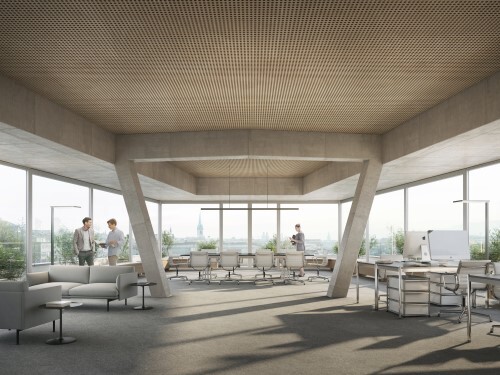 Zu den Hauptmassnahmen gehören die Versetzung des Lift- und Treppenkerns sowie die Gestaltung einer neuen Fassade mit Verlegung des Haupteingangs zur Weinbergstrasse. Das Gebäude umfasst drei Untergeschosse, darunter ein Konferenzgeschoss im 1. Untergeschoss, ein Parterre und Hochparterre mit grosser Glasfront, sowie Büroflächen vom 1. bis zum 4. Obergeschoss. Die Bürofläche im Dachgeschoss wird durch eine umlaufende Dachterrasse ergänzt.
