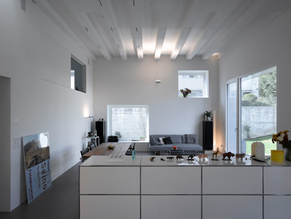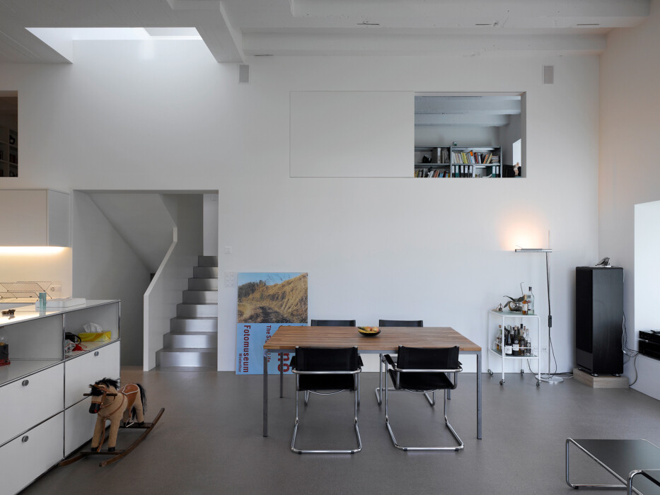 Der im Jahr 1961 erstellte Supermarkt wird komplett umgewertet und zu fünf architektonisch anspruchsvollen Hallenhäusern umgebaut. Die vier Eckhäuser und das Mittelhaus profitieren alle von den grosszügigen Raumhöhen des bestehenden Baus. Rund um eine fast vier Meter hohe, zweiseitig orientierte Wohnhalle entwickelt sich ein grosszügiges Raumgefüge mit 4.5-Zimmern (145 m² bis 160 m²) oder 5.5-Zimmern (160 m² bis 180 m²). Die unterschiedliche Ausrichtung der Häuser verleiht jedem einen ganz individuellen Charakter. Der eigentliche Luxus, welcher jedes der fünf Hallenhäuser auszeichnet, ist der Raum. Die Wohnhalle bildet das Zentrum, zu dem sich alle Zimmer über innere Fenster öffnen und erweitern.