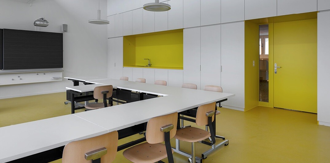 Das inventarisierte Gebäude mit Baujahr 1967 und dessen Anbau aus dem Jahr 1992 wird heute als Primarschule, Gemeindeverwaltung, Kindergarten, Feuerwehr und Vereinslokalhybrid genutzt. Aufgrund Veränderungen im Schulwesen, teils fehlender Infrastruktur für Vereine und einem dringenden Sanierungsbedarf bezüglich der Haustechnik, den geltenden Vorschriften der Gebäudeversicherung und den heutigen Anforderungen an den Energiehaushalt, wurde das Haus umgebaut und an heutige Standards angepasst. Der Umbau wurde in zwei. Bauetappen unterteilt und ermöglichte so teilweise das Aufrechterhalten des Schulbetriebs während der Bauzeit. Dadurch entfielen zusätzliche Kosten für das Anmieten von zusätzlichen Provisorien.