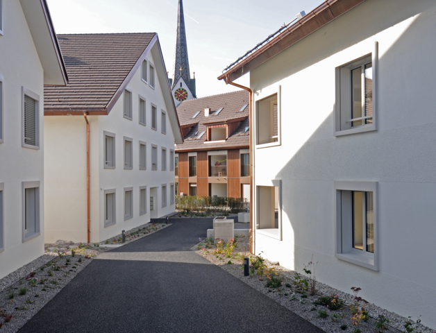 Mit dem neuen Quartier und den zwei verschiedenen Typologien der Gebäude wurde der Dorfkern durch die Architekten gekonnt erweitert und neu belebt.